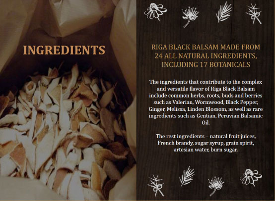 里加黑香脂酒由源自植物的全天然成分制成。 不同的成分賦予里加黑香脂酒豐富的復(fù)合風(fēng)味,不添加任何色素和合成香料。